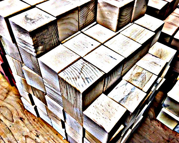 | と、普通であればこの木材チョークで名前を書くのですが、【森のかけら】の場合は保管スペースの関係もあって、40~45㎜角に荒加工した角材を棚に積み上げていくため、平面ではなくて小口に書かないといけないのですが、木材チョークだと細かな文字が書きにくいので、仕方なく油性のマジックで書くことになります。経験したことのある人なら分かると思いますが、埃や木粉も付着していてガサガサで凸凹した木の小口に文字を書くというのはかなりストレスの溜まる作業なのです。 |