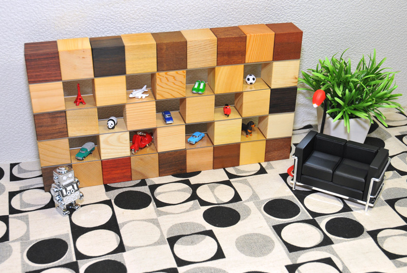 そんな折、デザイナーの佐野さん(エスデザインスタジオ)からタイムリーな提案をいただきました。【森のかけら】の新しい使いの方の提案です。【森のかけら】を初めて見られた一般の方の中には、「これ、何に使うの?」という方も少なくありません。興味が湧かないという方は素通りですが、興味はあるけど置いておくだけじゃ勿体ないなあという方もいらっしゃって、購入を悩まれる方もいます。『お部屋のインテリアに』という提案もしてきましたが、具体的なものがないとやはりイメージが湧かないものです。そこで、これです!