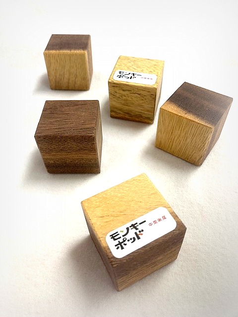 材の特徴については、以前にモンキーポッドのローテーブルについて取り上げさせていただきましたが、『かけら』で見てもこげ茶の深みのある色合いが美しいです!でも実際には白身のある辺材も入る事もあるのですが、この色合いがモンキーポッドのトレードマークのようなものですから、淡い色合いの物は人気が薄くモンキーとして認めてもらえない事もあります。小さな部材なので、木取り具合によって差が現れるのは宿命なのですが、これも人気材の証でしょうか。まるで毛皮のようなしなやかな杢と、不規則に現れる褐色の縞模様の織り成す複雑な表情が存在感抜群!個人の住宅のテーブルや座卓はもとより、店舗のカウンターなどにもよく使っていただいています。節分の豆は外に撒いても、マメ科のモンキーポッドは(家の)内で使ってください。 |