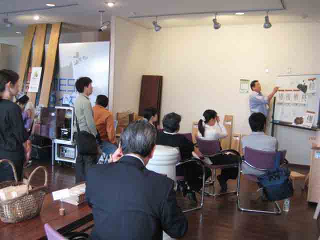 【森のかけら】のイベントでは時間と場所がある限り、「木の話」をさせていただくようにしていますが、今回の『えひめイズム』でもその時間と場所を与えていただいたので、いつもの『木の漢字クイズ』をさせていただくことにしました。約1時間から1時間30分ほどの設定にしましたが、観光客の方中心ですから設定に少々無理がありました。それでも木の事をいろいろ知ってもらいたいので・・・とりあえず集まれる方に集まっていただき、強引にスタート。いいんです、少しづつから物事は始まるのです。どんな大木も最初は頼りない小さな芽なのですから。