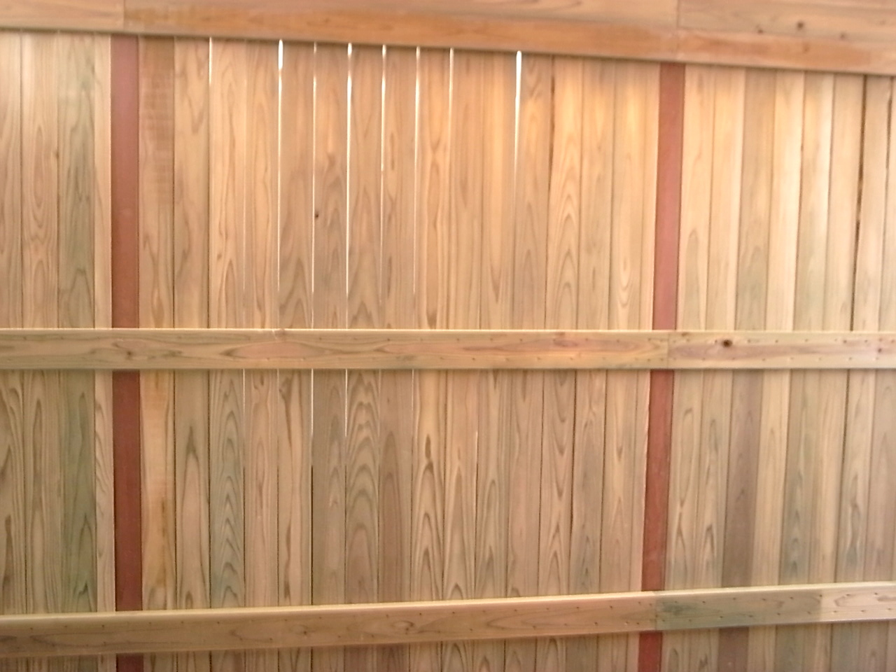 今回もご縁があって板塀の工事のご依頼を受けました。細かな打ち合わせとか基本が分かりませんので、全て自己流ですが、ありがたい事に信頼していただいたので、ベストを尽くすのみです。馴染みの大工さんに頼んで仕事をしてもらうので、何回かに分けての工事となりましたが、本日無事にすべての作業が完了しました。結構長めの無垢の板塀になりました。目隠しと風対策からほぼ隙間無しに張り詰める事となりました。板は杉材に防腐剤加圧注入した物を使用させていただきました。