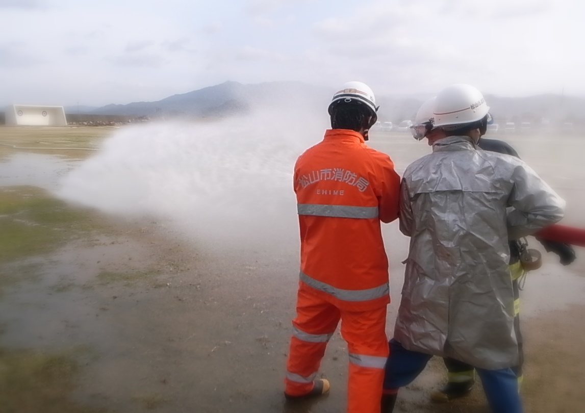 風下は避けたのですが、物凄い水圧で激しく返り血ならぬ返り水を浴びてしまいました。勢いがあるので絶対に手を外さないようにと注意を受けていましたが、50メートル先でも結構な勢いがありました。猛火を消火するにはこれぐらいのパワーが必要なのでしょうが、水も火と同様に木材にとっては天敵といえるかもしれません。燃えてすぐ灰になる火の恐さと、濡れてやがてカビたり腐ったりする水の恐さ、どちらも乾燥と艶には必要な要素ですが、過ぎたるは及ばざるが如しです。
