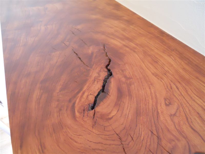 節はかつての枝の名残で、風雪に枝がしなり耐えた証に、木のエッセンスが凝縮され、縮みが現れます。その家とのバランスもありますが、M様は節のあるような質感がお気に入りだったので、こういのテーブルがとても似合います。これを契機にこれから、節ありのワイルド仕様のテーブルやキャビネットなどにも取り組んでいくつもりです。丁度、節の含まれたラスティク調のブラック・ウォールナットのフローリングも入荷しています。是非、これからはキャラクターマークとして存在感のある「節」にも注目していただきたいです!