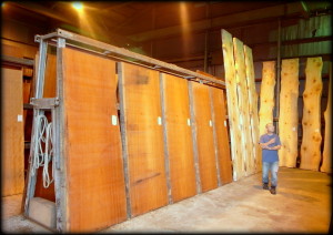 倉庫の方には、決して私のような零細材木屋が手を出せない高級高価な超特大サイズの耳付きの一枚板が鎮座(いや、屹立)ましましていらっしゃいます。全国に名だたる大手の材木屋のバイヤーの皆様が競り合われるスペシャルゾーンですが、身の丈と金庫の中身を知る私としては、ここまでくると興味も関心もすっかり薄れてしまいます。ほお~っ、こんなサイズがこれだけの価格で取引されるのかと参考にはなるものの、その後これらの板は様々な人の手を介在して世に出ます。