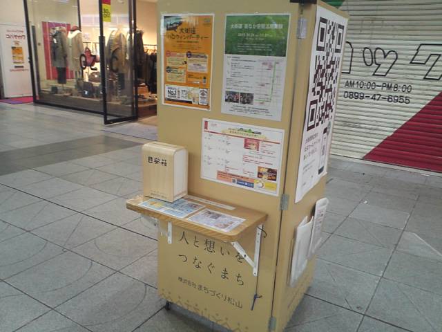 先日久しぶりに町に飲みに出ると、大街道の中で懐かしいモノに遭遇。それがこちらの『まちなか目安箱』。これは、松山市内の大街道と銀天街などの商店主の皆さん方が集まられて、中心市街地活性化を目的として広告掲示・放映やイベント企画・開催、市政と連携した、安心安全なまちづくりの強固な基盤作りに取り組まれている『株式会社まちづくり松山』さんが設置されたものです。大街道・銀天街を訪れる方が自由に商店街への要望を書いて投稿できるというもので市内2カ所に設置されています。