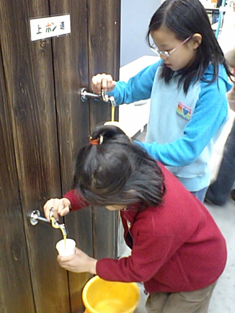 わが娘達も何度も列に並んでおいしいポンジュースを堪能させていただきました。特に小さな子ども達には嬉しくてたまらないようです。後ろでは次々にポンジュースの空瓶が積み上げられていることでしょうが、夢があっていいんじゃないでしょうか。都市伝説が伝説ではなくなったナイスな企画です。ところがしばらくすると・・・