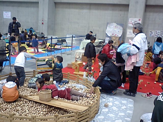 昨日と今日は、アイテムえひめにおいて『第3回まつやま農林水産まつり』が開催され、弊社も家内が【木の玉プール】や木のおもちゃなどで出展していました。『まつやま農林水産まつり』とは、松山で採れた旬の野菜や果物、また瀬戸内海で採れた新鮮な魚や加工品を一堂に集め、市民に広くPRする目的で開催されています。弊社は、こういうイベントでは歓迎される『子どもの遊び場』コーナーとしての参加です。こういうイベントでは、まずハズレません。大盛況です。【木の玉プール】にも子どもが溢れかえっています。