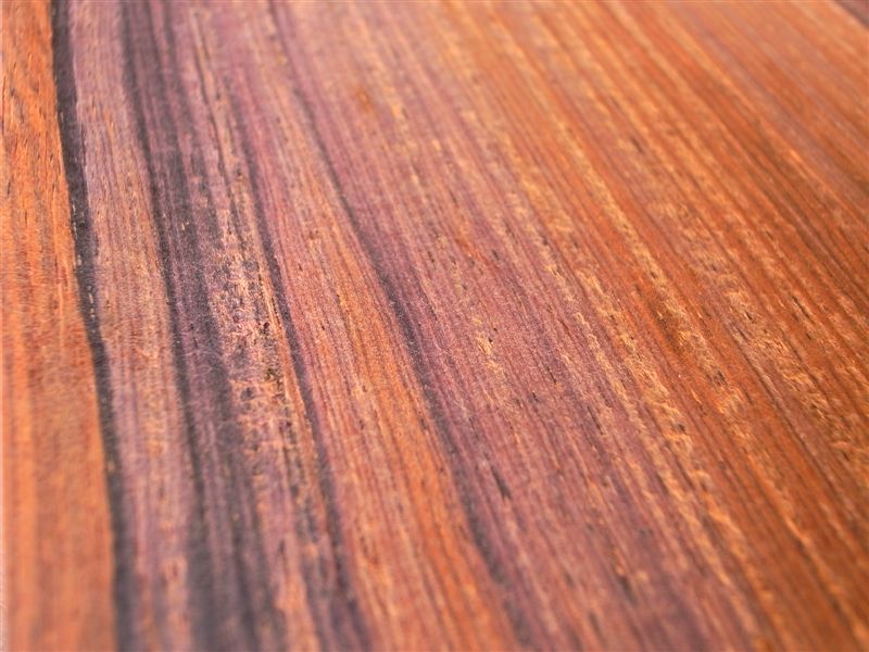 一般的な材であれば、ただのゴミ扱いされる「端材」も、プレミアな材の場合は引く手数多。大きなモノだと1本で数万円もする材では、むしろ端材の方が足が速く人気もあります。小さなクラフト細工やアクセントとしてワンポイントに使われるのであれば端材でも充分ですから。この『ココボロ』も複雑で濃厚な色柄や縞模様が魅力で、突き板や象嵌材としては勿論の事、宝石箱やギターなどの楽器の材料としても重宝されています。耳付のまあまあ大きめの端材を用意しています。