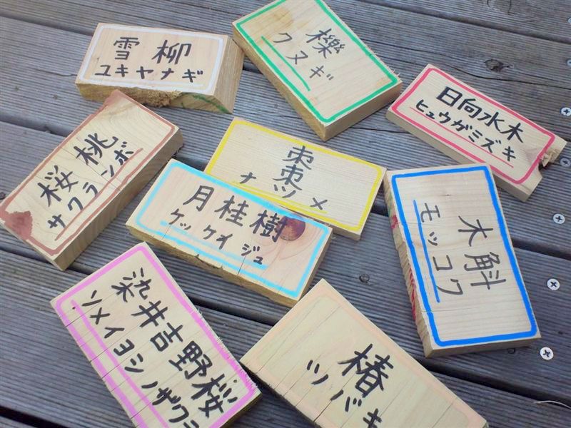 家内と私が剪定をする隣では、以前に庭木の事を夏休みの自由研究の題材にした長女がナームプレートを作成。桧の端材を使って、彼女なりのこだわりでカラフルに仕上げてくれました。血は争えません・・・私も子供の頃から絵や文字を描くことが大好きでした。どんな事でも誰かに褒めてもらえれば嬉しいものです。何でもいいから自信を持てるもの、好きなものが見つかれば人生は楽しいものになります!「書く」ことがこうして形を変えて仕事の支えとなってくれているのですから、まさに芸は身を助ける・・・。