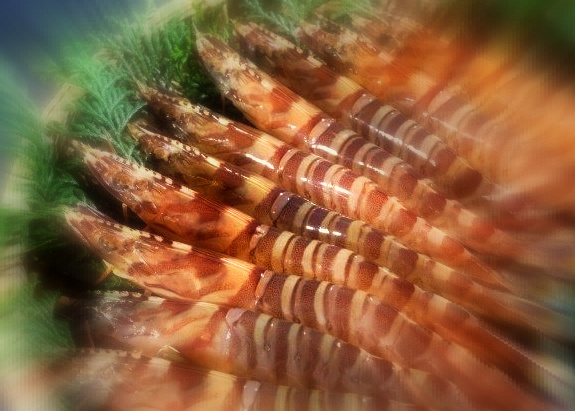 車エビの輸送には昔からおが屑(のこ屑・チップ屑)が使われているようです。昔は冷凍技術がないので、身近で安価に入手できるもので工夫されたのだと思いますが、まあ昔の人はものごとの特性などに精通していらっしゃる。おが屑を使う目的は、緩衝材としての機能以外に、保温・保湿機能が重要なようです。エビにとっては15℃前後の環境がよいようで、しっとりしてほどよい湿度のあるおが屑が最適だとか。優れた調湿性がエビの命をつないでいます。
