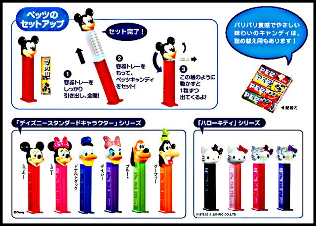 子供の頃に誰もが一度は手にしたことがあるであろうPEZ。日本で商品を発売している森永製菓㈱さんによれば「PEZとは、ペッツキャンディーとディスペンサーが一緒になったお菓子」。更にウィキぺディアによると、「キャンディー(錠菓)とそれを詰めるプラスチック製のケース(ディスペンサー、ボディーステム)。 ディスペンサーの上部には様々なキャラクターの頭部がついており、世界中にコレクターが存在する。語源はドイツ語のPfefferminz(ペーパーミント)の略から」・・・という事。つまり、これです。