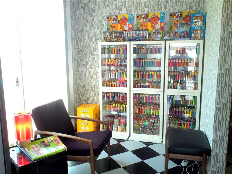 『PEZの家』のご主人は、熱心なPEZコレクターで、新居には専用の素敵なコレクションルームまで完備。もの凄い数のPEZが整然と並べられてありました。デザインの多様さと原色系の彩りの鮮やかさもPEZの特徴かもしれませんが、素人が迂闊な事を言っては失礼なほどに、コレクションからは気品と情熱が窺えます。これだけ一堂に揃うとどうしても気になるのが、『木製PEZ』!強度を考えれば容器全部は難しいでしょうが、グリップだけでも木でどうか?森永製菓に務める後輩と相談してみましょうか。