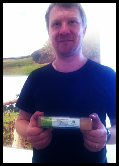 そこにはいろいろな木材のカットサンプルが置いてあって、自由に触れるようになっていたようですが、そこに書いてあったキャプションに強く反応!左の言葉、『LOOK AND TOUCH!』(見て、触って!)。木の良さは五感で味わい楽しむものと、日頃から訴えておきながらも、正直サンプルとして置いてある【森のかけら】などが、こどもたちに手荒く扱われていると内心ドキドキしてしまう小心者の私なのですが、この見事な潔さ!木を楽しむ事の原点があります。
