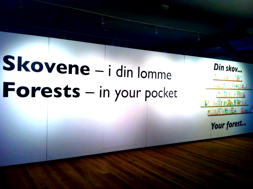後に続いて、 『思い出してください、森は単に森ではありません。』と、木を建築資材だけでは考えない含蓄ある言葉が続いていくのですが、さすがは森林大国。木に対する考え方が自由で豊かです。日本だったらこういう展示の場合、この木でOO分の建築資材が取れるとか、より具体的に数字で見せるキャプションが付くのでしょうが、『Forests – in your pocket 』というタイトルの響きに惚れ惚れ!恐らく木材関係の方の発想ではなくデザイナーさんの発想だとは思いますが、強く惹かれる言葉です。