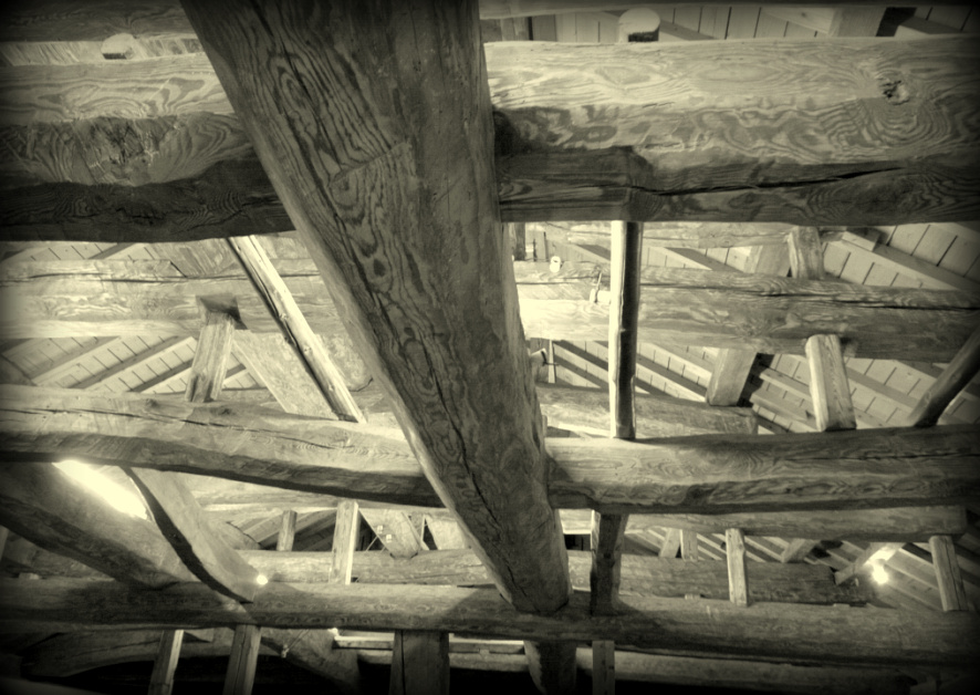 1階の梁間近で見れるところがあったのですが、長い経年変化で冬目が浮き上がってくる天然の「浮造り」になっています。フローリングなどのように摩擦抵抗が無い部分でも、これぐらいの時間を要すると浮造り状態になるものなんですね~。同時に虫害もかなり進行していましたが、目視する限り構造的にはまだまだ大丈夫なように見えました。今だったら「虫が出た~!」と大騒ぎになるところでしょうが、かつては虫との共存も当然の認識だったんでしょう。