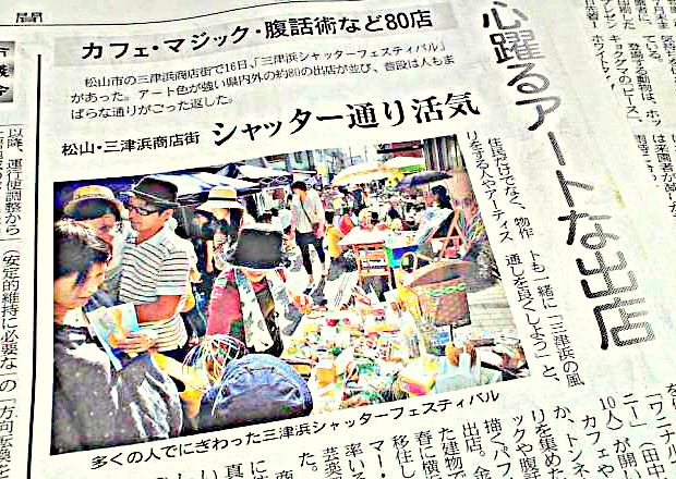 日曜日に松山市三津浜で開催された『三津浜シャッターフェスティバル』。私は溜まった仕事があって、自宅でパソコンと格闘しておりましたが、家内が『おはなし屋えっちゃん』と一緒に木の玉プールや木の玩具などを出展させていただいていましたので、宿題の終わった娘たちを連れて午後から、会場となった三津浜商店街へ覗きに行かせていただきました。正直商店街にどれほどの人が集まるのかとたかをくくっていましたが・・・行ってビックリ!三津浜をなめていました!