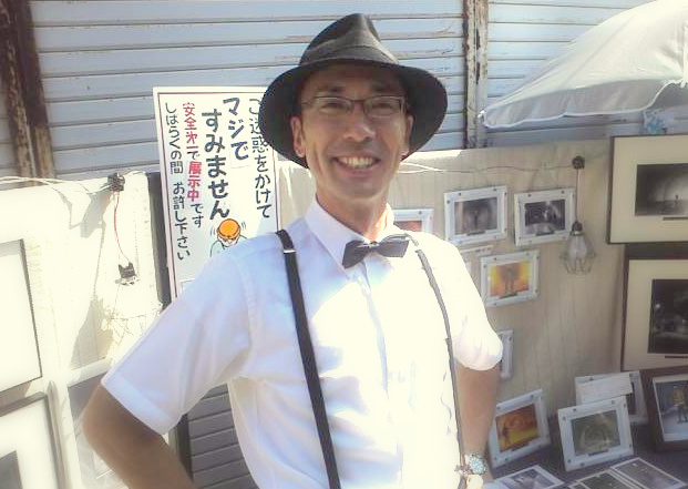 友人・知人が結構出展されていて、ご挨拶だけでもしておこうかと娘たちとブースを探しながら通りを歩いていると、対向から知り合いが続々と声をかけてきます。三津在住の方はもとより、皆さん結構遠方からもお出ましになられていたようですね。出展者としても、似顔絵のせだゆりかちゃん、怪しいトンネル写真家の内山やすひろさん㊨、善家君も菅野建設さん、たま工房さんと一緒に木工ブースに出展。その前では鉄職人・ツヨニー工房の西山さん、TOWERの室さんも北条の皆さんと一緒に。