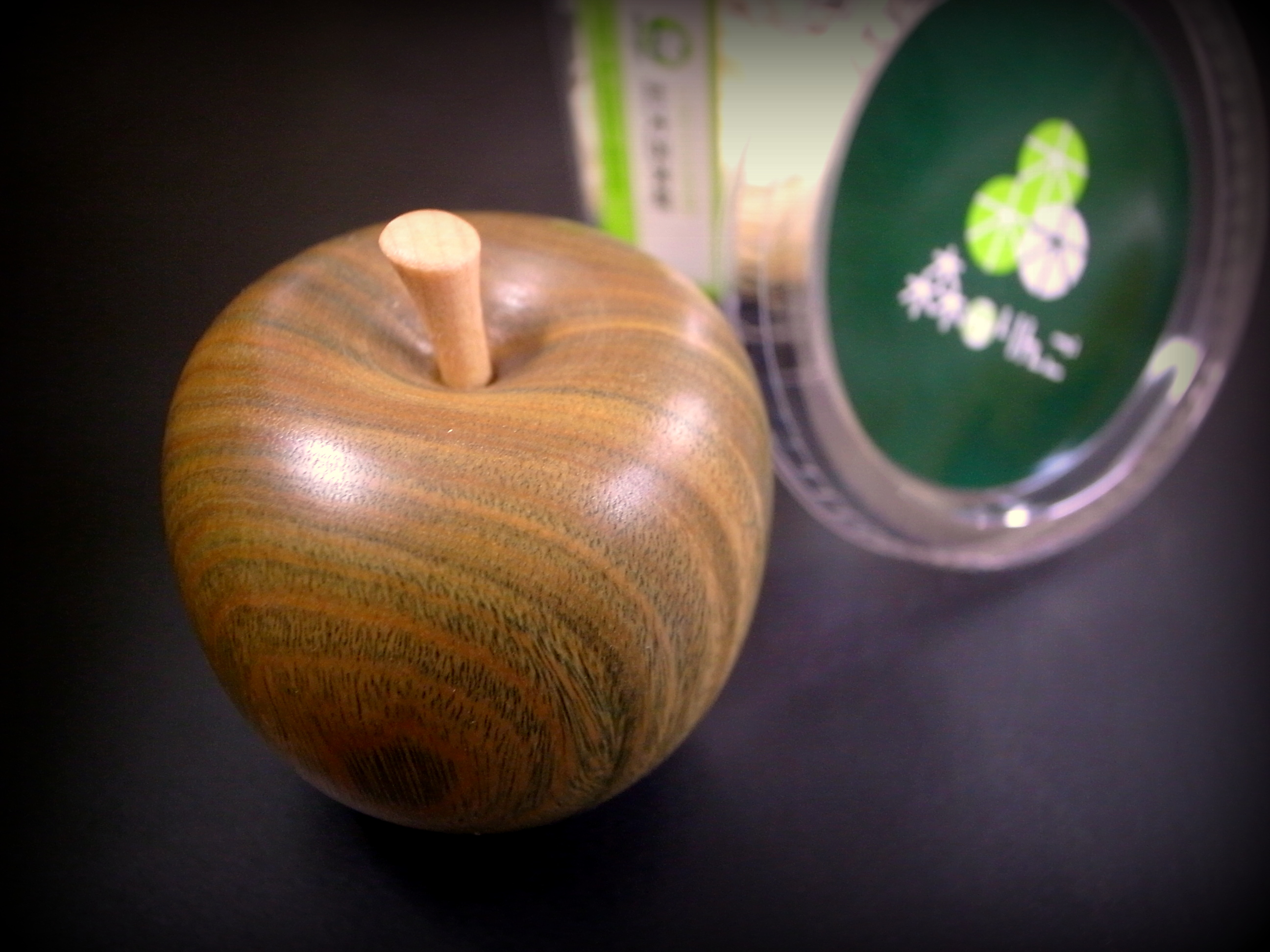 それだけ『世界一』というキーワードには人の琴線を震わせる力があるという事でしょう。その世界一重たい木は、そのレア度ゆえに高価で(そもそも大きくなる木でもないので小さな木しかないのですが)弊社の在庫も決して多くはありません。しかし、これだけ物語性の強い木はその端材だけでも充分に存在感がありますし、むしろ小さい方が希少性が増すというもの。『森のりんご』の場合削り取る量が少ない事もあり、モッタイナイ度も低く心への負担も少ない!