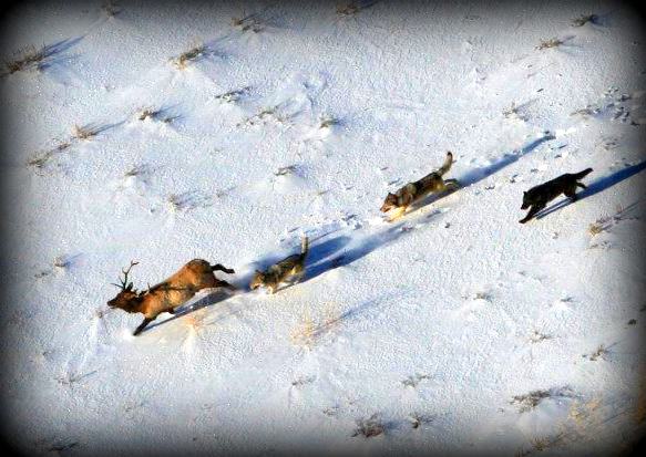 昨日に続いてオオカミの特徴について。オオカミはそれぞれの群れのテリトリーの間に緩衝地帯を作り、草食動物たちの繁殖の余地を残します。そして、数が増えすぎてこの安全地帯に収まり切らなくなった獲物だけを食べるのです。また、無差別に獲物を捕らえるのではなく歳をとったシカ、病気のシカ、怪我をしたシカ、仔ジカなどを的確に見つけ出して狩りをするのです。この事は、シカに伝染病が流行ったとしても大量死する事態を回避させる効果もあります。