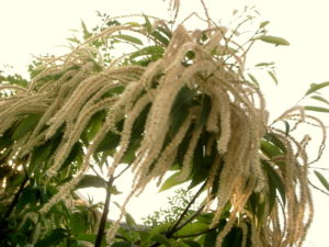 このクリの独特の匂いについては、『その匂いは精液に由来するスペルミンなので、精液の匂いがする』という定説がまことしやかに囁かれてきました。実は私もその噂を信じてきたのですが、どうやら本当は違うようで、クリの花の香気成分はスペルミンではなくて不飽和アルデヒドという成分に由来するものなのだそうです。だからといってそれがどういうものなのか、それだからどうだということではないのですが、クリみたいな身近な木でも検証されない噂はあるものなのだと妙に感心。