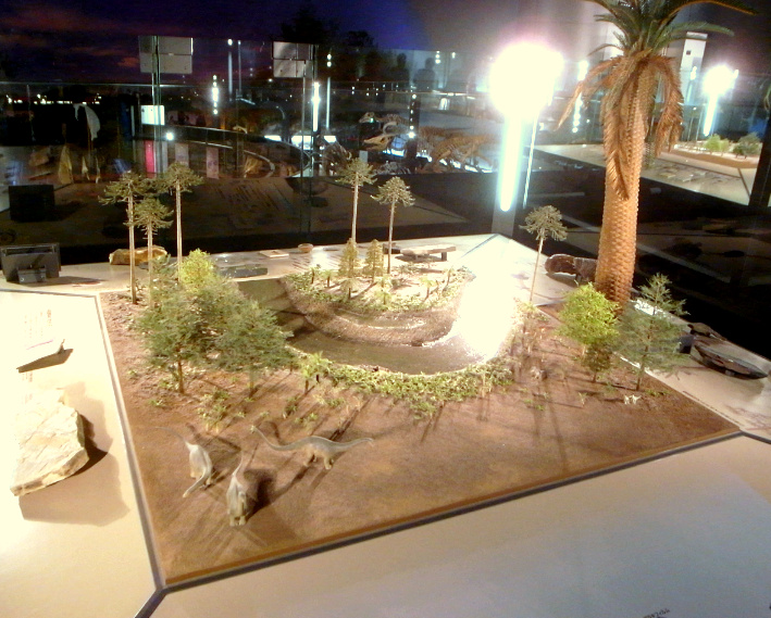 | また別の項では、愛媛県伊予市の市木『メタセコイア』について書きました(『メタセコイア外伝・伊予市の扶桑木』)が、太古の樹木って恐竜と同様に偏屈なマニア材木屋の心も揺さぶるのです。館内の解説文によれば、「ジュラ紀後期は、三畳紀やモンスーン的な気候がとだえた結果、世界のほとんどが均一な植生になった時代」だそうで、「やや乾燥した環境の中でもっとも繁栄した裸子植物はジュラ紀のおわりまでに現在のほとんどのグループが出揃い、巨大化した針葉樹と競うように巨大になったグループが栄えた時代。」 |