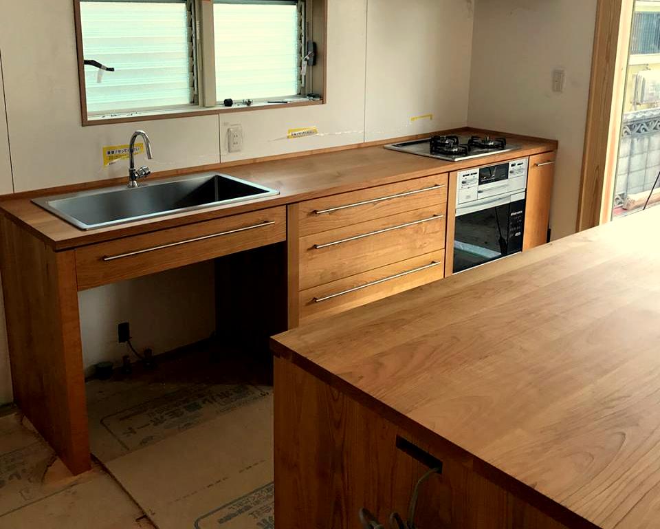 | 前日は文字通り浦野さんの宿泊近くの居酒屋で軽く一杯で済ませて、翌日の本番に備えました。本番といっても飲み会のそれではなく、キッチン施工のそれ。本当は興味津々で施工現場も見させていただきたかったのですが、生憎こちらも仕事が立て込んでいて工事そのものは拝見できませんでしたが、施工後にお邪魔して見させていただきました。完成間近の新築現場の中で凛とした佇まいを見せるヤマザクラの美しいキッチン。その姿を見ればわざわざ県外からもお客さんがご依頼に伺われる理由も分かります。 | ![]() |
