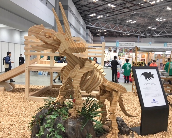 その後、自分のブースに戻っていたら福井の木材関係の女性の方が訪れていただきました。名刺を切らされていたらしく名前をお聞きしたのですがのでちょっと失念して申し訳ありません。中西木材さんから「愛媛に変態がいるから行ってごらんなさい」という事でご紹介を受けたもので・・・と朗らかに笑って来られたのですが、それに私はどう返せばいい?まあ、その光栄なる紹介に恥じないようにたっぷりと粘質的な木材トークをさせていただきましたが、通じたかどうか?恐竜もいいけど木の変態トークもね!果てしなく続く・・・ |