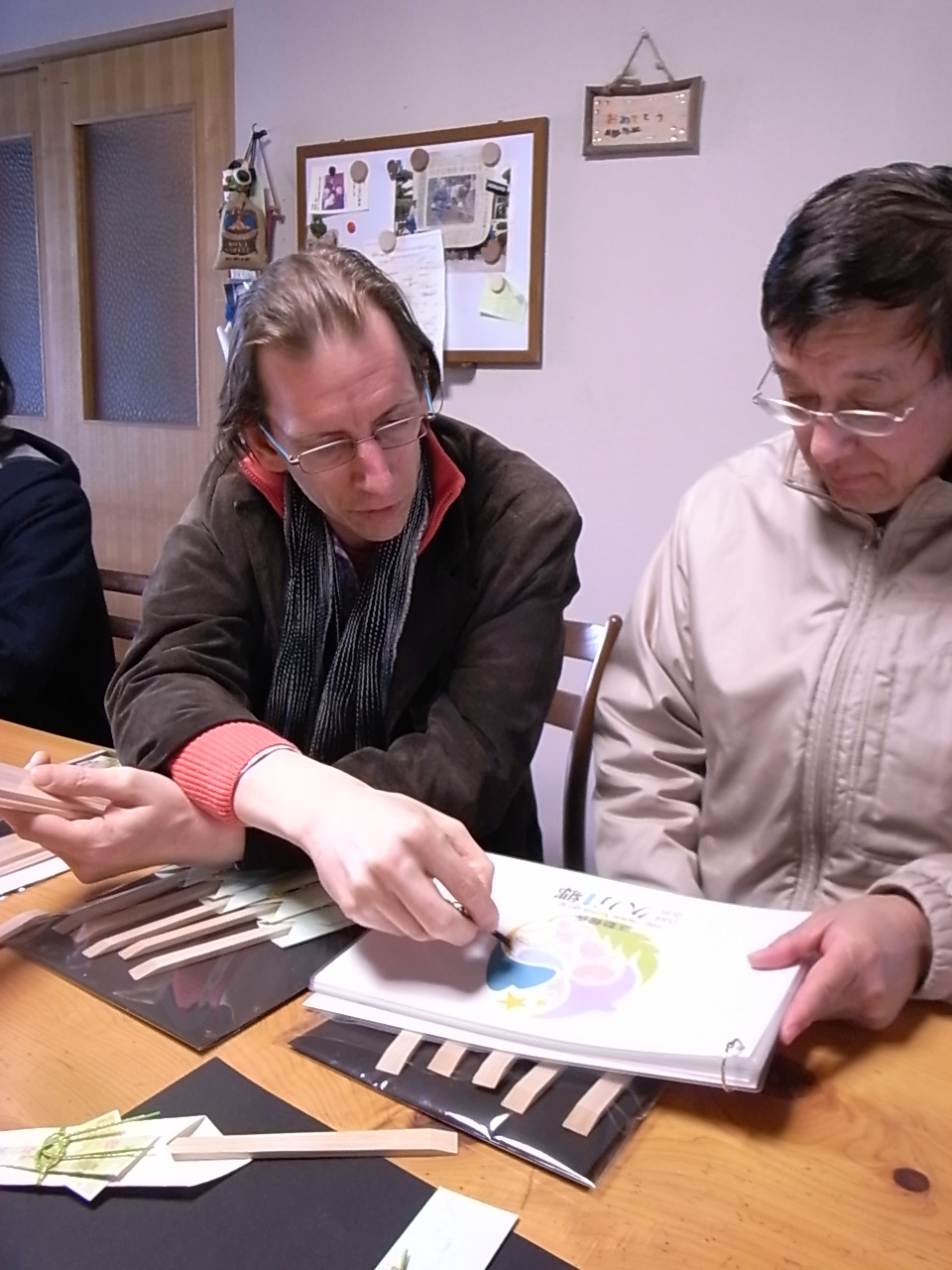 とりあえず第1ステージのけじめに、お疲れ様でしたの言葉を贈らせていただきますが、すぐの第2ステージが始まりますのでご油断めされるな!岡田イズムは脈々と藤田さんが受け継がれていかれるはずです。他の行政関係者や他県が驚く、いや羨むような不思議な関係を更に発展させていきましょう。右の画像は、昨日の大雪の久万高原町に、『久万郷』の井部健太郎君の自宅にて、トム〈黒船〉ヴィンセントと一緒に『久万郷』の商品を真剣に見つめる岡田所長。まだまだ岡田ネットワークを頼りにしている人がたくさんおりますので、お酒は体を壊さない程度に・・・人様に言えた義理ではありませんが・・・。まだまだ所長と一緒に見させていただいた夢覚めやらず、であります!