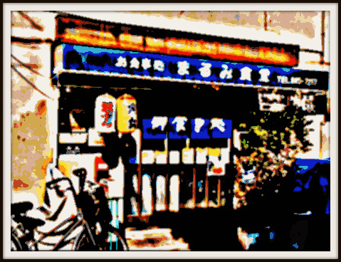 続いて、ホテル到着後は梅原さんと藤田さんと私で、ランチにお誘い。当然、高級店や有名店などにお連れするはずもなく、地元の人でもよっぽどその道に通な方でなければ知らない(どころか辿りつく事も叶わないであろうという)、時間が止まったような昭和の香り漂うお食事処「まるみ食堂」へ。お店の選択は藤田氏、さすがツボを押さえています。当然、梅原さんも何の違和感もなくお店に溶け込まれます。私も初めてでしたが、このエビ天丼ボリューム満点で絶品でした!
