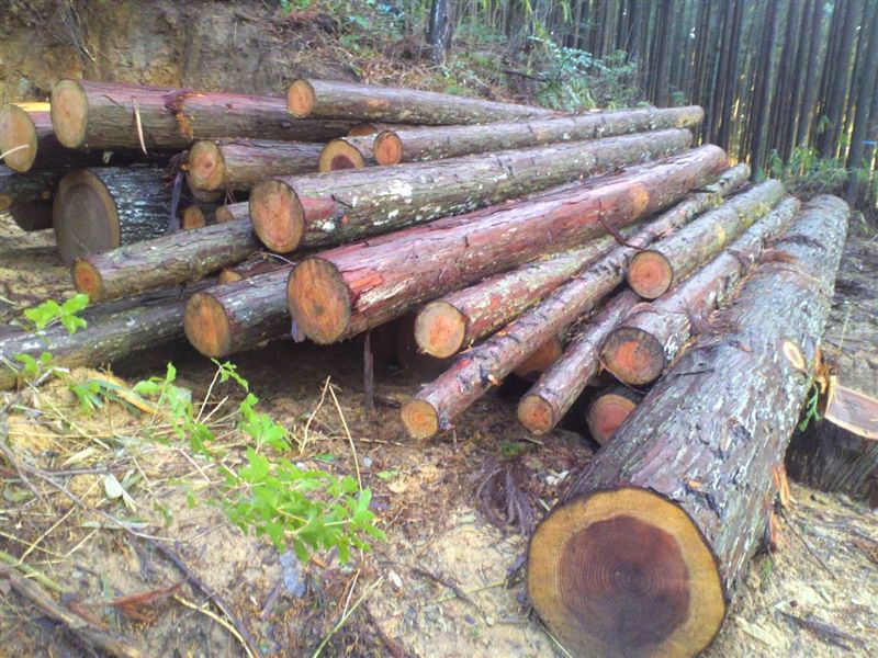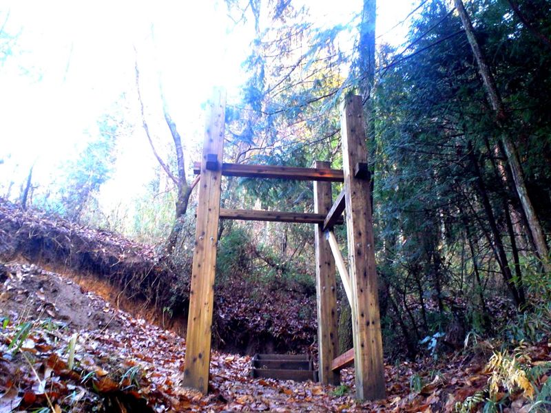 昨日の愛媛木材青年協議会の「木のトンネルと砦」の補足です。私が行った日は、前日大雨が降っていたので足元がかなりぬかるんでいましたが、広葉樹の落ち葉が足元に堆積してふかふか。ただし濡れた落ち葉は結構滑ります。『木のトンネル』まで行くのは予定外だったので、普通の靴で来てしまっていて途中で2、3度転んでしまいドロドロに・・・。それも配慮して、足元にも木で土止めを作ってくれています。まだ 未完成ですが、完成すればもっと楽にトンネルまで行ける事になります。
