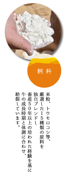 日本酒大吟醸造りで使用される際に削りとられた四国の米粉を飼料に加え、大切に育てています。